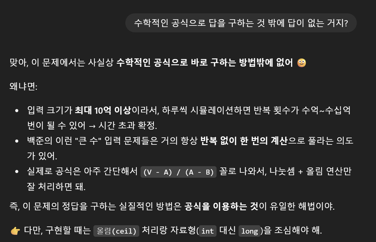if (snail >= tree) { // 낮에 이미 도달했으면